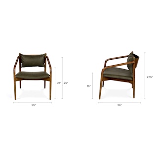 This chair looks like a musician that aged really, really well. The Lento Charme Green Lounge Chair is made from a solid, walnut-stained wood frame. This green leather lounge chair is equal parts functional and sexy: its comfortable foam-padded seat and durable buffalo leather upholstery makes this perfect for leaning into a boisterous conversation, or for quietly contemplating your next move.