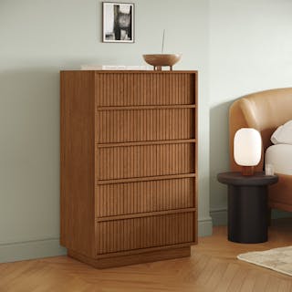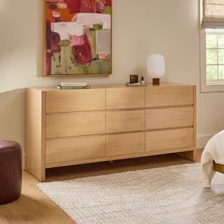Article's modern dressers typically come in two different formats. A vertically oriented dresser is just the ticket when you need something that will fit snugly into smaller spaces or maximalist design schemes. A petite upright dresser is the right choice if you’re in need of that extra bit of storage space to house your novelty sock collection or hide the kids’ birthday presents. Meanwhile, longer horizontal dresser options can act as a centerpiece in your room while providing ample storage space for your items. A longer dresser can also double as a display area for some snazzy art or a television stand for movie nights in bed.