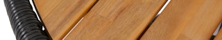 A warm, earthy palette and natural textures like oak and rattan create a relaxed, open-air feeling.