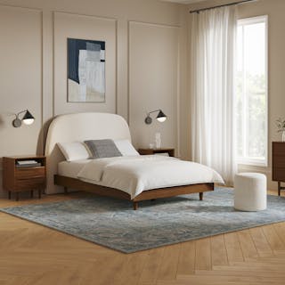 Lenia King Upholstered Bed - White Oak and Lunaria White Bouclé