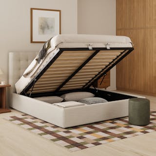 Lenia King Upholstered Bed - White Oak and Lunaria White Bouclé