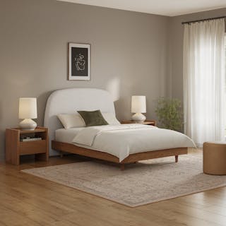 Lenia King Upholstered Bed - White Oak and Lunaria White Bouclé