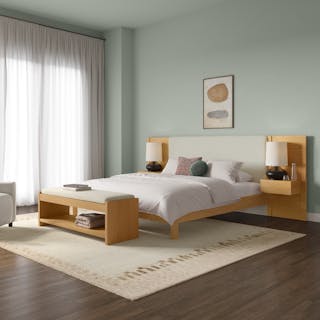 Lenia King Upholstered Bed - White Oak and Lunaria White Bouclé