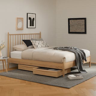 Lenia King Upholstered Bed - White Oak and Lunaria White Bouclé
