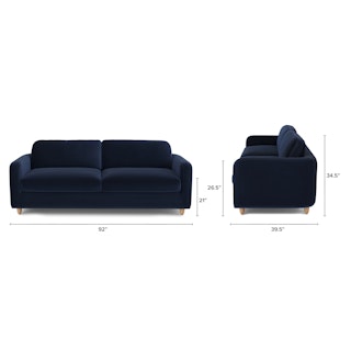 Vati 92" Velvet Sofa - Natural Oak and Hale Ink
