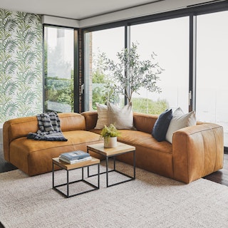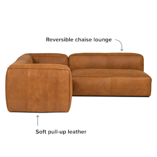 Cigar 94.5" Leather Reversible Sectional - Rawhide Tan