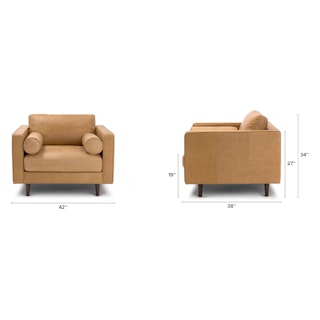 Not only will it support and comfort you, this piece will grow old with you — it gets even better looking with age. The Sven Chair’s corner-blocked wooden frame will hold you up on good days and bad, and this piece vows to mix well with all of your design choices. With clean lines, a tufted seat and luxuriously stuffed back cushions, this piece is worth settling into. Our most popular sofa, reimagined as a large, cozy lounge chair. This modern take on a mid-century classic features clean lines, a tufted seat, and a luxuriously stuffed back cushion. Two matching round bolsters complete the look. Natural color variations, wrinkles and creases are part of the unique characteristics of this leather and it will develop a vintage slouchy look with regular use.