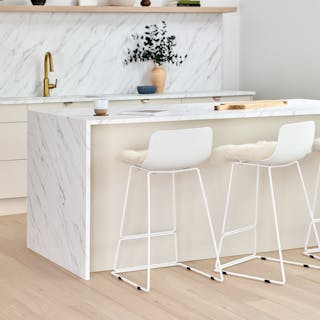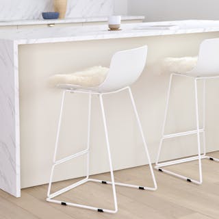 Love these counter stools! They are quite sturdy and comfortable. Recommend the sheepskin seat pads too, which soften the look while providing a bit of cushion.