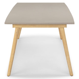 Natural elegance with an edge of industrial chic. The Atra features acacia wood legs and a polystone top. Equal parts durable and beautiful, the Atra table is as well-suited for a beautiful meal as it is for a raucous game night under the stars.