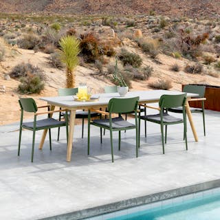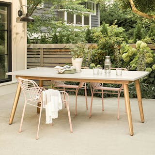 Natural elegance with an edge of industrial chic. The Atra features acacia wood legs and a polystone top. Equal parts durable and beautiful, the Atra table is as well-suited for a beautiful meal as it is for a raucous game night under the stars.