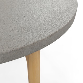Natural elegance with an edge of industrial chic. The Atra features acacia wood legs and a polystone top. Equal parts durable and beautiful, the Atra table is perfect for a solo coffee on your deck, or a glass of wine and a good book.