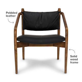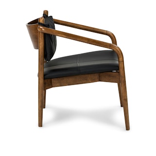 This chair looks like a musician that aged really, really well. The Lento black leather lounge chair is made from solid, walnut-stained wood frame. This black leather lounge chair is equal parts functional and sexy: its comfortable foam-padded seat and durable buffalo leather upholstery makes this perfect for leaning into a boisterous conversation, or for quietly contemplating your next move.
