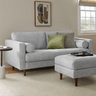 Like two peas in a pod — a soft, comforting pod, that is. With Rens's beautiful criss-cross wool-blend pattern paired with Rudbeck's rustic cotton slub design, the duo gives your space a little rakish flair and interest without taking over the space.