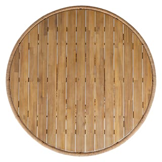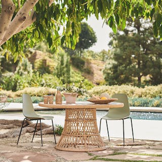 California, baby. The Calliope sets the scene for cheese balls and rum drinks in your outdoor space, but certainly doesn’t shy away from a bottle of wine. Topped with solid acacia wood and set atop a round wicker base, the Calliope brings the ease of 70s beach-side living to your space, no matter how landlocked. Catch the wave.