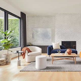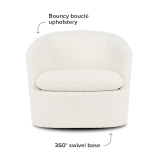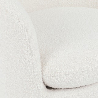 Turning heads is out; turning your entire body? In. The Turoy Swivel chair is a true statement piece. Upholstered with bouncy bouclé, it is equal parts sinkable and stylish, making it an easy choice for any living room that needs a little oomph.