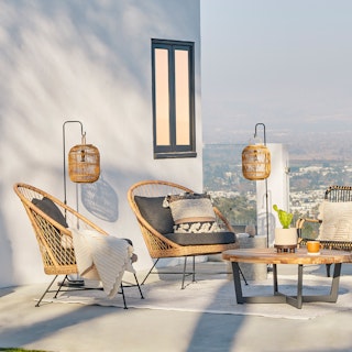 Did somebody order ambience? The Bori Lantern and Stand Set gives your outdoor space that enchanting glow normally reserved for special occasions. The faux rattan, battery-operated lantern hangs on a minimalist iron stand that can be moved around anywhere you need a little lighting magic. Forget candlelit dinners. Lantern-lit dinners are where you’ll find us now.