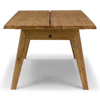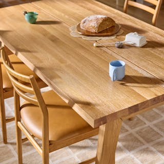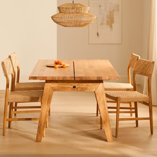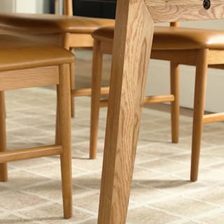 Rough and refined — does a hotter combination exist? This bundle evokes a certain cowboy 'tude but with the sleek finish that behooves your dining room. The Madera table is built from solid oak and finished with a wirebrush, giving the tabletop a nicely textured finish. The Dabo chairs — also built from solid wood — feature spindled backrests and a generous seat.
