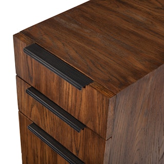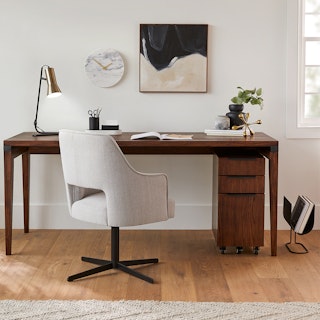 Minimal, sleek, timeless — what else can we say? This bundle features everything you need for your 9-5 grind. Happily nestled below its big-sibling desk is the Madera File Cabinet, with a slim profile and four locking wheels, this helpful office companion allows you to tailor your under-desk space to suit your needs. Along with the expansive open desktop space of the Madera Desk, you'll always have room when the documents start to pile up. And if they do? Throw them in the file cabinets' vertical file drawer.