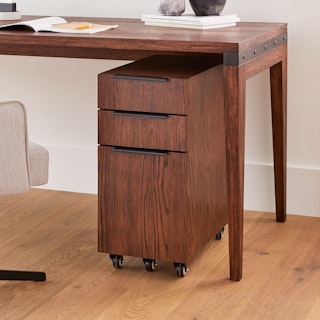 Minimal, sleek, timeless — what else can we say? This bundle features everything you need for your 9-5 grind. Happily nestled below its big-sibling desk is the Madera File Cabinet, with a slim profile and four locking wheels, this helpful office companion allows you to tailor your under-desk space to suit your needs. Along with the expansive open desktop space of the Madera Desk, you'll always have room when the documents start to pile up. And if they do? Throw them in the file cabinets' vertical file drawer.