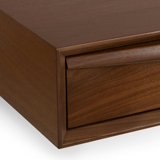 A floating nightstand, a plush and curvy bouclé fabric bed... sounds dreamy. The Lenia Nightstand is a minimalist gift wrapped in a classic mid-century modern package. The Kayra however, with its sculpted headboard and curvy proportions wrapped in fuzzy-but-chic fabric, feels more like a big bear hug — without the claws.