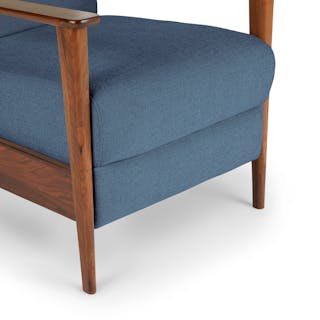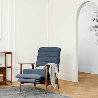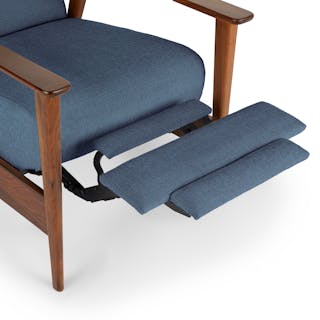 A master of disguise, the Ellow Recliner effortlessly transforms from a mid-century modern lounge chair to a deluxe recliner. Made with high density foam filling and solid walnut legs, the Ellow features a 3-point push back reclining mechanism that gives you more control over the way you lounge. All the way back for your afternoon nap, partially-reclined for a relaxed game show marathon, or fully upright when you’ve got company — the choice is yours.