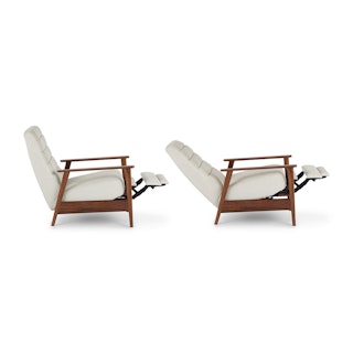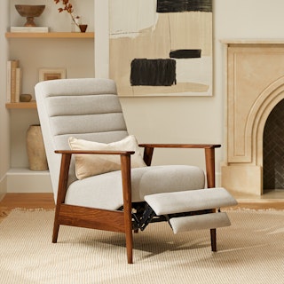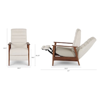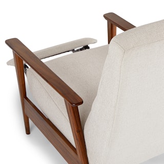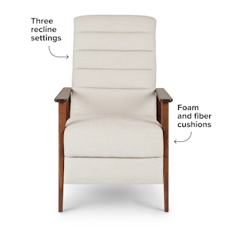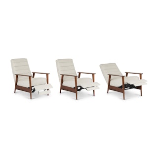 A master of disguise, the Ellow Recliner effortlessly transforms from a mid-century modern lounge chair to a deluxe recliner. Made with high density foam filling and solid walnut legs, the Ellow features a 3-point push back reclining mechanism that gives you more control over the way you lounge. All the way back for your afternoon nap, partially-reclined for a relaxed game show marathon, or fully upright when you’ve got company — the choice is yours.