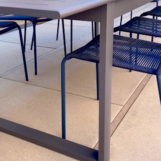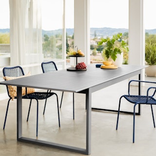You love to see it. “It,” meaning a rust-resistant powder-coated aluminum frame that’s as ready for your Sunday morning brunch in the sunshine as it is your Friday evening fondue party under the stars. Paired with the durable and stackable Dot, these chairs are lightweight with a breathable back — perfect for steamy temperatures and conversation. Looking to spread out a bit? Ofer's buttery leaf means your feasts can extend as the night goes on.