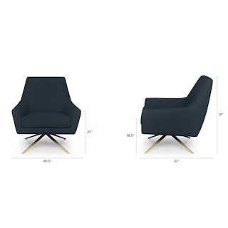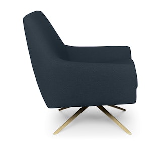Half “step into my office,” half “philosophical pining.” The Spin in ink blue is the modern swivel chair that lets you have your career and eat your heart out too. A classic mid-century silhouette and tweedy fabric are set atop a polished gold base, bringing style and polish to a very comfy reading chair.