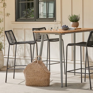 Crafted with woven, fade-resistant polypropylene rope atop a solid metal frame, the Zina Bar Stool Bundle features two of our durable, fan-favorite stools, enough for your happiest hours outside. The streamlined silhouette keeps the look modern, while the seat and back provide structure and support.