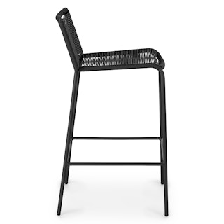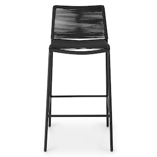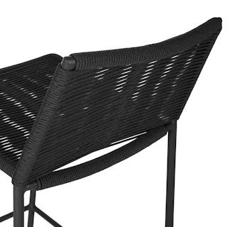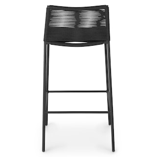 Crafted with woven fade-resistant polypropylene rope atop a solid metal frame, the Zina Bar Stool is durable enough for your happiest of hours outside. The streamlined silhouette keeps the look modern, while the seat and back provide structure and support.