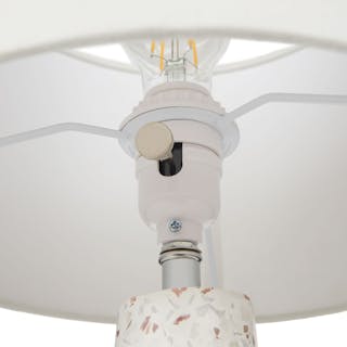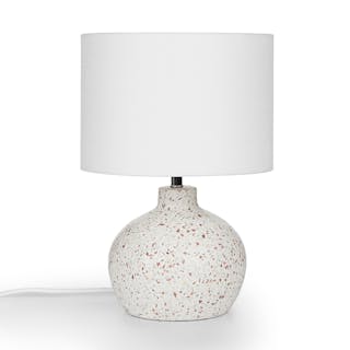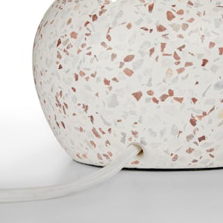 A true highlight. A pristine white jute drum shade complements the gorgeous terrazzo base of the Ando Lamp. Shine on.