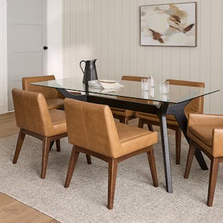 The super long Seno Table comes fully prepared to host everyone (seriously, invite everyone). It extends easily to comfortably fit all your guests and is no stranger to making room for more. Paired with the richly upholstered, generously padded Chantel dining chairs and bench, you won't need to clink a glass or make a speech to get people's attention.