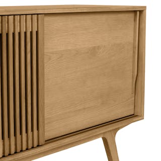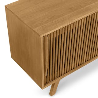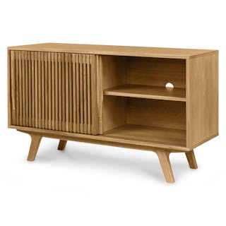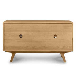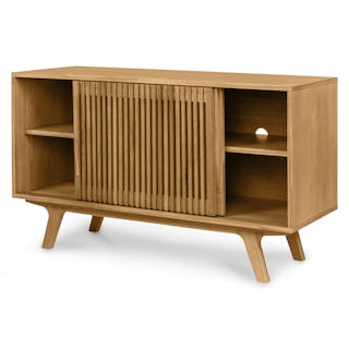 Looks great, easy to assemble, holds records on one side and a receiver on the other with plenty of ventilation. Good holes for cord management. @ designers the... More