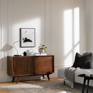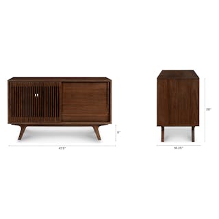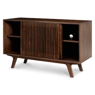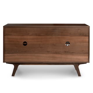 Looks great, easy to assemble, holds records on one side and a receiver on the other with plenty of ventilation. Good holes for cord management. @ designers the... More