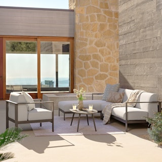 Sit back and relax. Designed with an exposed powder-coated aluminum frame and ergonomic design sensibility, the Burkel has got your back. Featuring a cushy yet firm seat and back cushion, this lounge chair is upholstered in a durable abrasion-resistant basketweave fabric equipped with waterproof slips for added protection against the elements.