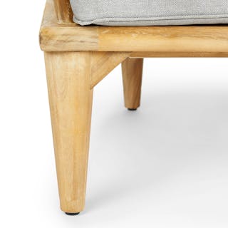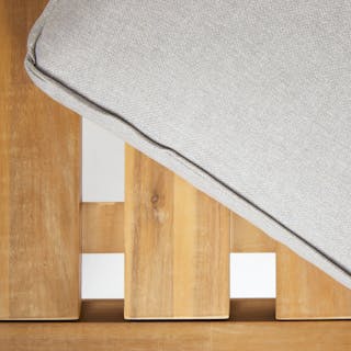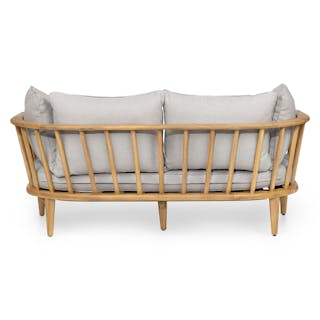 R + R, but make it cute. The Sora Loveseat is mid-century goodness in 21st century materials. A solid wood base, rounded corners, and pretty spindled back makes for an outdoor loveseat that is eye-catching but has substance — just like your summer crush. Rest on those plush cushions between sets of beach volleyball, knowing that those pillows are upholstered in weather-resistant fabric and will brush off easily. Serve!
