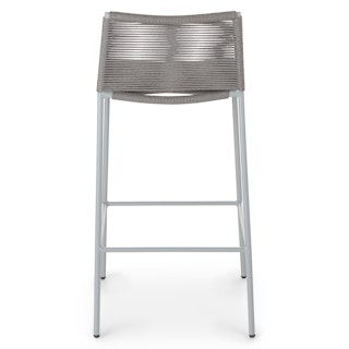 Crafted with woven fade-resistant polypropylene rope atop a solid metal frame, the Zina Bar Stool is durable enough for your happiest of hours outside. The streamlined silhouette keeps the look modern, while the seat and back provide structure and support.