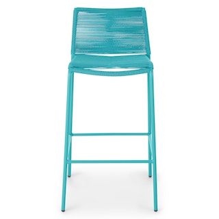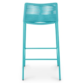 Crafted with woven fade-resistant polypropylene rope atop a solid metal frame, the Zina Bar Stool is durable enough for your happiest of hours outside. The streamlined silhouette keeps the look modern, while the seat and back provide structure and support.