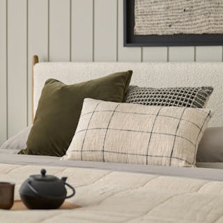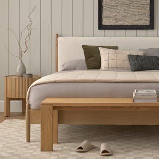 Thumbnail of Lenia King Upholstered Bed - White Oak and Lunaria White Bouclé provided by Darcie - 1 of 0.