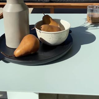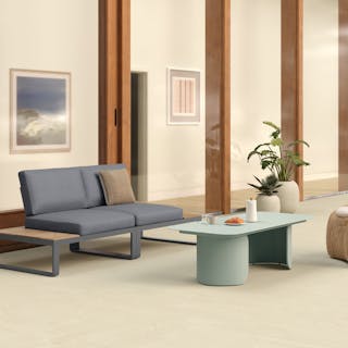 The Aby Loveseat and lounge chair are constructed from faux wicker and powder-coated aluminum. The look of wicker without the maintenance? Lightweight aluminum that’s easy to move around? Yes, please! Paired with the stylish and sturdy powder-coated metal Skane, this bundle promises to be a reliable companion, like Lassie, but for lounging and holding glasses of iced tea.