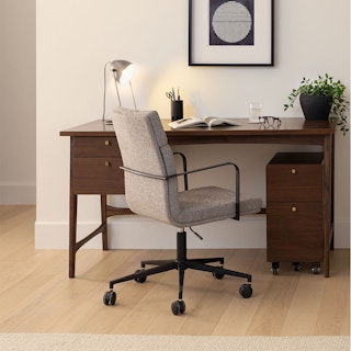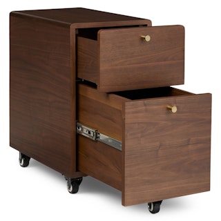 Love oak or walnut? How about mid-century design? Of course you do. This classic throuple is a mid-century dream. With its good looks and top-notch organizational skills, how could it not be? The Krossa file cabinet is the perfect buddy to the Krossa desk, more than capable of storing all your essential documents or carefully categorizing your midday snacks. This best-selling collection is designed to fit seamlessly together, showcasing fine craftsmanship and superior attention to detail with beautiful joinery and subtle curves. The Krossa isn't the kind to crave attention — but it will get some anyway.