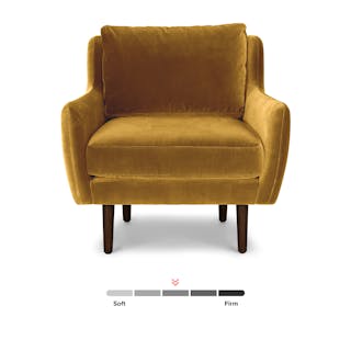 Straight off the Paris runway, circa 1970. Rounded proportions and wooden legs give this compact chair a stylish edge while its size and comfort make it perfect for small space living. The Matrix is crafted from sumptuous velvet for undeniable comfort and style.