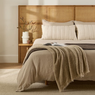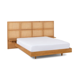 "Ooh là là" indeed... The Rattan Retreat Bundle features our boho-esque coastal Olalla headboard and fan-favorite Basi bed. The highest quality veneer, solid-plywood support slats, solid wood legs, and woven rattan bring a natural warmth to your bedroom — you know, that kind of lazy-sunny-day warmth you'd typically only find while vacationing in the tropics.