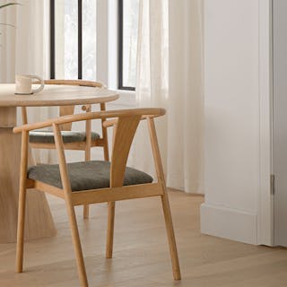 When we say "keep it light" this is what we mean: the Emmer and the Fonra, together in your dining space. Both built from solid wood, this table-and-chairs set works beautifully together because they establish a nice foundation for dinner without adding a lot of visual weight.