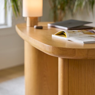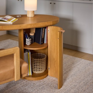 Natural born leader. That's right, we're talking about you. But, also, this desk. Put the Baarlo against a wall or leave it out in the open to show off its soft curves and natural oak glory, it knows how to command a room placed either way. Plus, its spacious cabinet for storage and discreet cord management keep the chaos of work at bay. Even though you're super organized, naturally.
