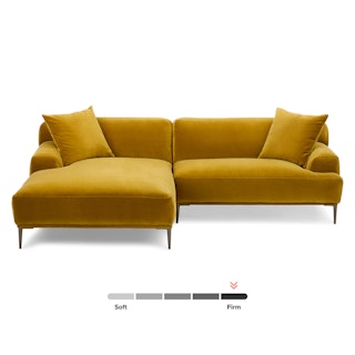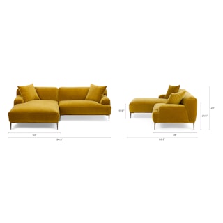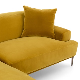 A generous serving. The Abisko Sectional offers a wide lounging chaise so you never have to restrict your relaxation. Made with plush velvet upholstery and titanium-finished legs, the Abisko sectional is here to make a lasting statement. Throw your hands behind your head and stretch out — this is your time to recline.