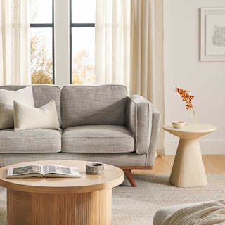 Saddle up. The Nirvana Dakota Tan leather chair transports you to sunny afternoons on the ranch — or an urban, rainy city loft. With its high-density foam-filled cushions, this lounge chair comes with a warning: it's so comfortable you might never leave. Paired with the concrete Ozetta, it may have a hard exterior but its clean lines, smooth top, and soft curves make it a total softie, just like your "cool" older brother who pretends he's never cried a day in his life. It's also the perfect size for a box of tissues — tell your brother.