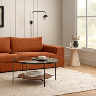 Saddle up. The Nirvana Dakota Tan leather chair transports you to sunny afternoons on the ranch — or an urban, rainy city loft. With its high-density foam-filled cushions, this lounge chair comes with a warning: it's so comfortable you might never leave. Paired with the concrete Ozetta, it may have a hard exterior but its clean lines, smooth top, and soft curves make it a total softie, just like your "cool" older brother who pretends he's never cried a day in his life. It's also the perfect size for a box of tissues — tell your brother.