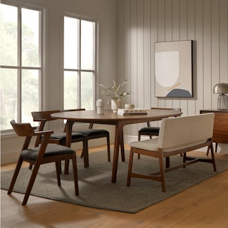 We designed the Plumas to embody every hallmark of mid-century modern design: tapered legs, gently rounded corners, and beautiful natural wood grain. Plus, we incorporated a self-storing butterfly leaf, letting you expand your guest list from four to six with ease. Does it get any better than that? Not a rhetorical question (but we'll tell you the answer anyway)—no, no, it doesn't.