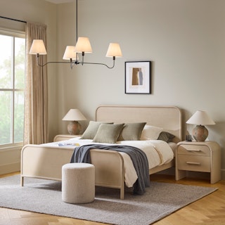 Question: is it dorky to sing love songs to your bed if it looks as good as the Faydra? With its large headboard and footboard made of natural rounded wood, how could you not? Bold style, organic softness — what a bed, what a bed, what a bed, what a mighty good bed…